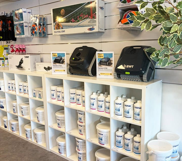 Vi har även fyllt hyllorna med ett komplett utbud av pooltillbehör, reservdelar, kopplingar och poolkemi för ett smidigt underhåll. Oavsett vad du letar efter finns våra experter på plats för att ge dig personlig rådgivning och hitta rätt produkter för din pool.