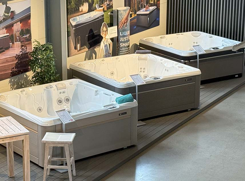 Besök vår butik i Täby och upplev ett vårt showroom för pool och spabad! Här kan du se och känna på ett brett utbud av spabad, utforska vår utomhusutställning med poolmiljö, pooltak och det innovativa Aqvisdeck, samt testa vår Endless Pool – en inomhuspool perfekt för simträning och avkoppling.