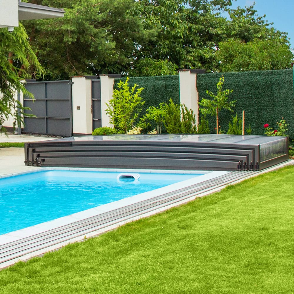 VIVA™ pooltak är det perfekta valet för dig som vill ha ett elegant och praktiskt lågt pooltak till en 5×10 m pool. Tack vare enkelräls på endast ena långsidan får du fri åtkomst från tre håll, vilket gör både bad och rengöring runt poolen enkelt och bekvämt. Trots sin låga höjd skyddar taket effektivt mot löv, damm och insekter, samtidigt som det hjälper vattnet att värmas upp snabbare och behålla värmen under kyliga nätter. På så sätt förlängs badsäsongen och uppvärmningskostnaderna minskar. Dessutom är VIVA™ konstruerat för att tåla mer snölast än många andra låga pooltak på marknaden, vilket gör det till ett tryggt val i det nordiska klimatet.