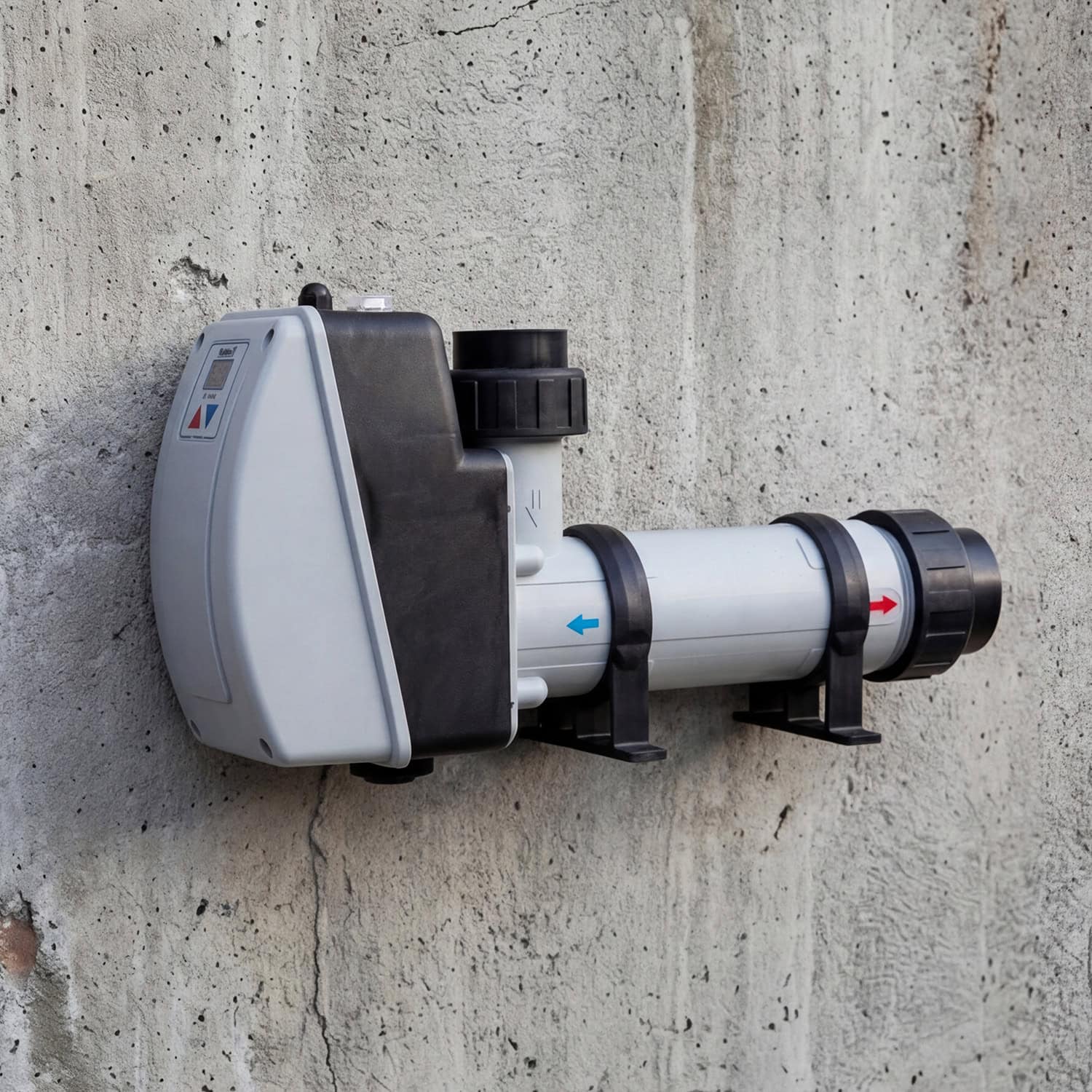 - Elvärmare (För små pooler): En kompakt och smidig lösning som är billig i inköp och enkel att installera. Eftersom elvärmare har en högre driftskostnad än till exempel en värmepump, rekommenderar vi i första hand detta system för uppvärmning av mindre pooler eller spabad.