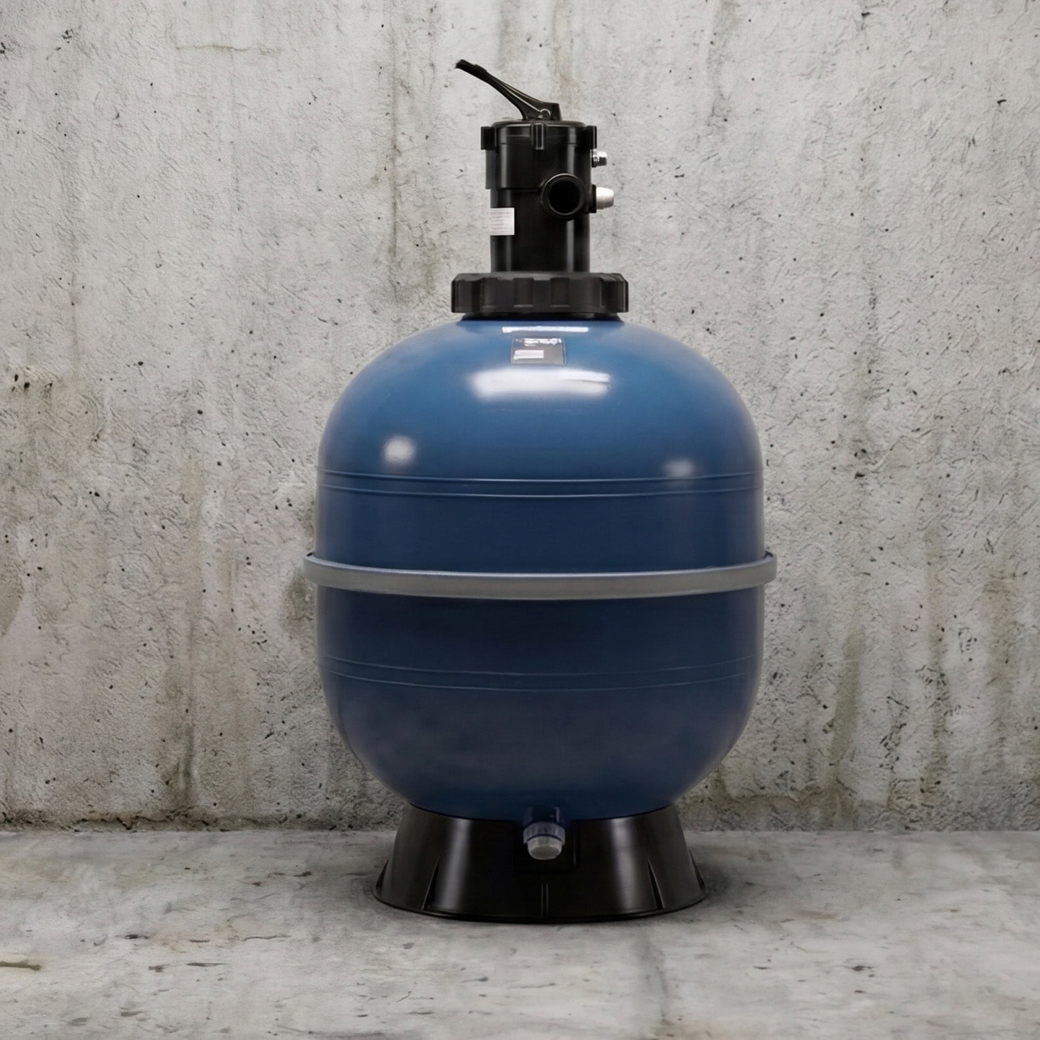 - Sandfilter: Den mekaniska reningens mittpunkt som effektivt fångar upp smuts, alger och partiklar. Välj mellan traditionell filtersand eller effektivt filterglas för bästa möjliga rening.